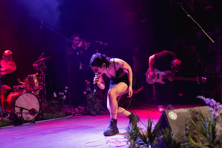 Tras una intro de sonidos selváticos, empezó “A veces sueño”, tema que abre el disco. La acompañaban Javi Pedreira (guitarra), Tony Molina (vientos), Jacob Reguilón (bajo) y Mario Carrión (batería). Ya con la guitarra eléctrica en ristres y tras saludar con un “Qué pasa Bilbao, buenas noches”, sonó “Cada minuto”, menos electrónica que la original, y continuó con la poética “Madre conciencia” de su anterior larga duración “La costa de mosquitos”. Le añadieron un ritmo ska y parte del público arrancó a bailar.