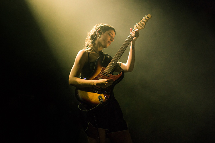La banda cobraba un papel fundamental en el escenario, destacando las trompetas y el trombón de Tony Molina, que resonaban en muchas de las canciones. Sin olvidarse de la batería de Yoyo, de la guitarra eléctrica de Álvaro Cuberris, “su mano derecha”, aunque este a su izquierda y de Jacob Reguilón al bajo, el “tipo que ha grabado más discos en este puto país, aunque me ha pedido que no lo dijera”. La artista también tocó diversos instrumentos durante su actuación, pasando de la guitarra al piano, destacando su versión acústica de “Coyotes”. Una escena completamente íntima en la que un solo foco la alumbraba a ella. Una voz dulce y desgarradora que empezaba con un simple “te quiero” con el que continuaron coreando la letra las dos mil almas que llenaron la Riviera. Está claro que la canción que forma parte de la BSO de la serie “El Embarcadero” es un himno.