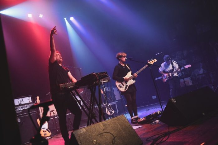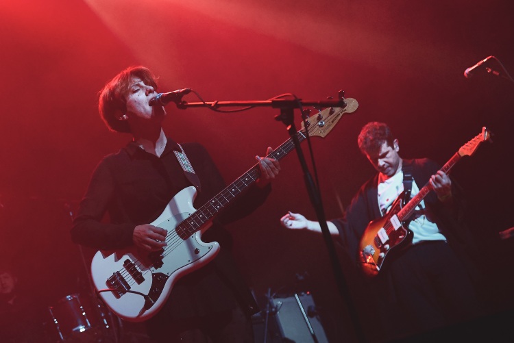 Con tan sólo diez minutos de retraso sobre la hora marcada para el inicio del show, se presentaron sobre el escenario del Kafe Antzokia los y las cuatro miembros del grupo y, tras una breve intro con “Dinosaurio”, y sin mediar palabra, propinaron el primer hostión de la noche con “Robo tu tiempo”, muestra absoluta de ese sello característico del que hablábamos anteriormente, y cuya característica esencial es el maravilloso desorden y el caos que provoca el sonido de los sintes y los teclados, superpuestos sobre una base de rock clásico de guitarra y bajo, que van recorriendo el camino que, inalterablemente, va dibujando una batería que no para ni un segundo de marcar el ritmo de un concierto, en el que las cosas fluyen de una manera absolutamente natural; todo ello manteniendo una innegable actitud punk, que es la que destila la voz de Rodrigo, encargado de protagonizar los momentos más salvajes del bolo, como la interpretación de “Cómprate un yate”, “Huele a colonia chispas”, o “Ruptura”.