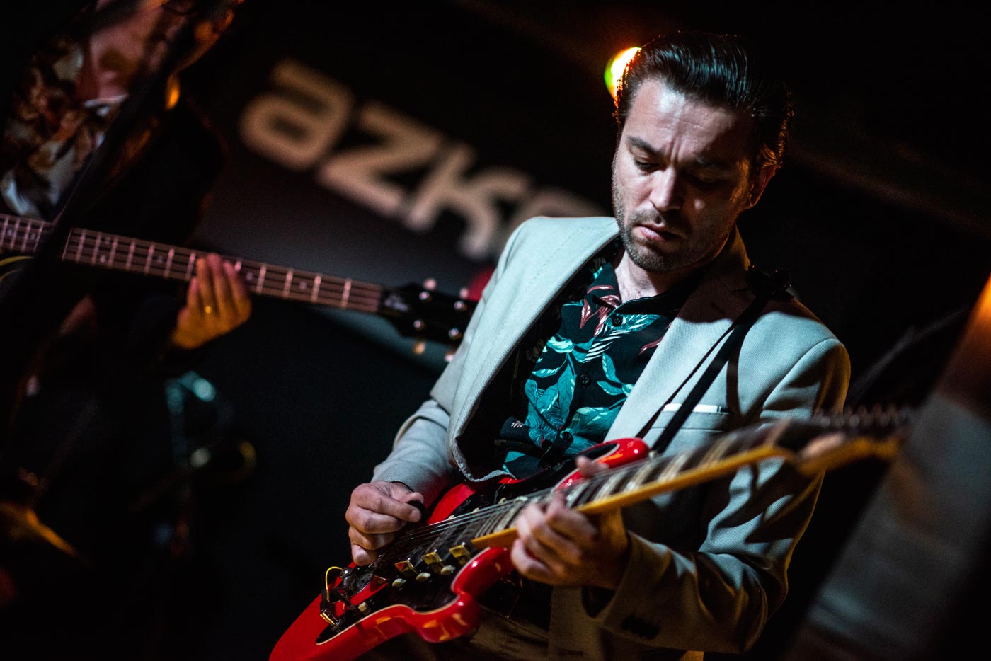 La puesta en escena de los portugueses TT Syndicate da suficientes pistas del show a punto de explotar, casi a la par que los fuegos artificiales de Aste Nagusia. Trajes-pincel y camisas hawaianas, que musicalmente se traducen en una exhibición vibrante de R&B y soul, con ramalazos de improvisación jazzística y alguna que otra marejada de surf-rock. De hecho, los ‘Nunos’ de esta banda, Nuno Riviera (guitarra) y Nuno Gomez (batería) integran el combo de “surf-noir” -no te acostarás sin descubrir una etiqueta más-, Thee Chargers.