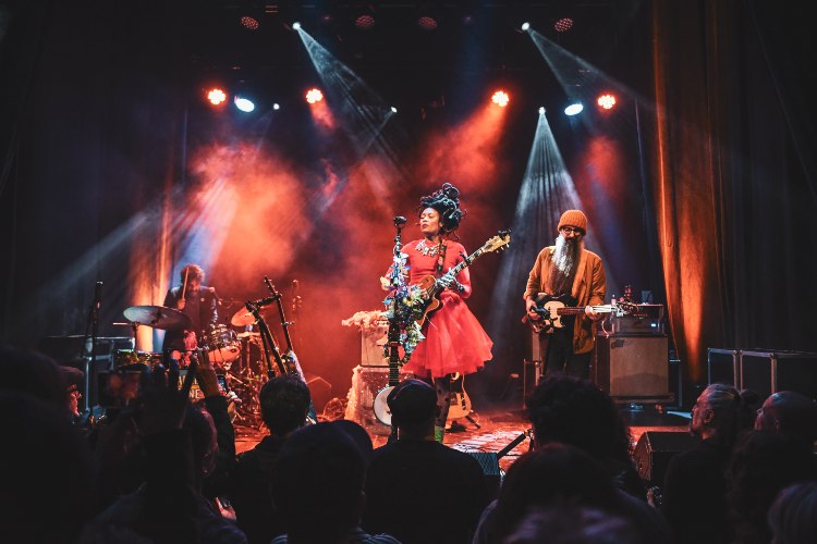 En realidad, y vista la economía de medios que emplearon, la pregunta quedaba en el aire: ¿estaba limitada por la falta de instrumentos o precisamente por esa circunstancia se potenciaba la esencia misma de la canción? Pues ocurría un poco de ambas, según la canción que interpretasen. Sonó el blues “Rollin’ and Tumblin’” (tema tradicional popularizado por Muddy Waters y el más reciente single de Valerie June), con la cantante a la guitarra eléctrica, sin llegar a despuntar nunca en este instrumento. Personalmente sí que me convencía más cuando agarraba el banjo, caso de la esperada “Somebody to Love”, que arrancó en solitario y a la que se fueron sumando sus compañeros a medida que avanzaba, creando uno de los momentos más destacables del show. Cerraron con “Honey Bee” y tras la clásica petición de vuelta, ella misma nos regaló, guitarra en mano, una personal y emocionante versión del “What a Wonderful World” del risueño Louis Armstrong.