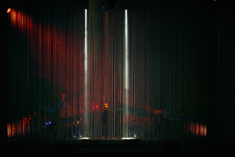 El magno escenario del Auditori está totalmente a oscuras. Suenan los primero compases de “Mismo sitio, distinto lugar” y los focos nos muestran a la banda enjaulada en el interior de varias capas de cortinas confeccionadas por finos tubos de plástico, a las que le irán sacando partido escenográfico a lo largo del concierto. El inicio es de tanteo y la voz de Pucho parece un tono por encima de lo habitual. De hecho, no es hasta “Fuego”, tercer tema de la noche, que la cosa ya empieza a sonar ajustada. Sensación que queda del todo certificada con una excelsa “El discurso del rey” en la que, por primera vez, el vocalista surge de detrás de la última de las cortinas para dejarse ver con nitidez ante un publico que lo vitorea. Es el momento de hacer un primer parón para dirigirse al público en catalán y castellano y recordar que hoy es 8 de marzo y que muchas de nuestras compañeras han protagonizado una nueva jornada de históricas protestas en contra del hetero-patriarcado y sus desmanes. A partir de aquí el acelerón va a ser de aupa. A “Maldita dulzura” le suceden “En el río”, “Guerra Civil”, “Golpe maestro”, “Los buenos” y ”23 de junio”, el único de los temas que hemos podido escuchar con sus nuevos ropajes. Aunque sería mucho más adecuado hablar de gasas vaporosas. Porque lo que han hecho Vetusta es quitarle a sus canciones la esencia rockera de guitarras, bajo y batería, para sugerirla con mucho más tirabuzón percusivo en el que los teclados, pero también las acústicas, el ukelele, el xilofón e incluso el armonio son los protagonistas. Teclados que, por momentos parece de juguete, se suman al mayor revestimiento electrónico de algunos pasajes, pero dejando siempre en primer plano a la que se erige como auténtica protagonista de la noche: la voz de Pucho. El cantante es el pilar sobre el que bascula todo, y sus notas se proyectan con una pasmosa solidez sobre las butacas del Auditori para deleite de los presentes. En “Baldosas Amarillas” pone a todo el público a cantar para secundarle en los coros; en “Consejos de sabios” logra erizarnos el vello con el crescendo final y, en un tema tan exigente como “La marea”, sale del envite electrónico con una facilidad tan pasmosa que nos deja noqueados del todo. Además Pucho no ha tenido inconveniente en asumir sin complejos su papel como maestro de ceremonias, centrando todas las miradas en su persona para descargo del resto de la banda. Le ha dado igual marcarse unos pasos de baile junto a los dos tramoyistas que han estado presentes sobre el escenario, para trazar diferentes puestas en escenas con las cortinas, enfundarse una peluca de mujer a lo Freddie Mercury en “I Want To Break Free” o estirarse sobre las tablas para contemplar las 'estrellas'. Y es que ya son doce años los que han transcurrido desde la publicación de su primer disco, en los que la banda ha crecido de forma exponencial, logrando un estatus que les permite hacer cosas con la confianza del que sabe que no solo serán bien recibidas por su público, sino que también cerrarán la boca de muchos de sus detractores.
