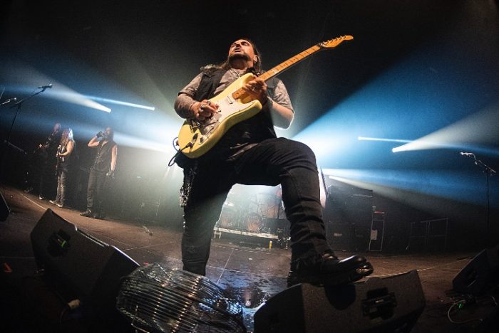 Después de la intro de rigor, los jinetes de Barakaldo salieron al galope sobre “Black Beast”. Un primer impacto que sería recibido por la audiencia de manera absolutamente entusiasta. Enseguida quedaría claro que aquello no iba a ser una actuación más de Vhäldemar. Sería sin duda, la versión aumentada del espectáculo que les hemos podido disfrutar en decenas de ocasiones. “Death To The Wizard” y “1366” seguirían haciéndonos apretar los dientes dejando paso a la primera colaboración estelar de una noche histórica. El virtuoso Dann Hoyos paseando sus famosos rastas y su impresionante destreza, a lo largo de “Fear”. Momento increíble al que le seguirían dos misiles como “Straight To Hell” y “Metalizer”.