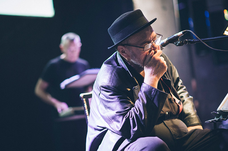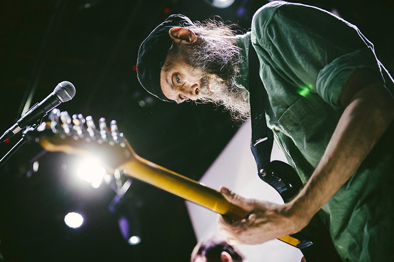 Afortunadamente todo lo contrario que la reencarnación de This Heat oficiada por los dos Charles, Bullen y Hayward (este último en la foto que comanda el texto), en compañía de Daniel O’Sullivan (bajo y teclados), Alex Ward (guitarra y clarinete), Merlin Nova (la hija de Hayward, voz y violín) y Frank Byng (batería). Una formación que no tiene absolutamente nada que ver con la original y que, a priori, podría plantear dudas sobre la maniobra de exhumación de las canciones del mítico trío londinense. Nada más lejos. Las canciones de This Heat son, casi cuarenta años después de su concepción, un lienzo si no en blanco sí abierto a recibir nuevas capas y texturas. Y el mejor ejemplo de ello tuvo lugar cuando tras arrancar el concierto con Horizontal Hold Charles Bullen rompió la sexta cuerda de su guitarra y se dispuso a cambiarla con toda la calma del mundo, ausentándose durante un par de temas. En otro contexto y de haber estado en frente otros músicos, que el guitarrista principal abandone el escenario se convertiría en motivo más que suficiente para que la banda no pueda seguir tocando. Sin embargo This Is Not This Heat afrontaron la ausencia como si tal cosa y, lo que es más importante, el público apenas llegó a notar la ausencia de Bullen durante esos temas.