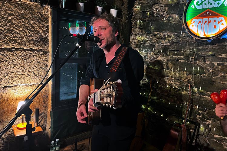 La historia de Villanueva con A Casa de Arriba viene de lejos. Antes de este proyecto, Josete se formó en otros proyectos de la ciudad, uno de ellos llamado Martynez, en los que llegó a estar dos veranos enteros tocando, miércoles tras miércoles, en la pequeña, encantadora y especial sala viguesa, estableciendo un vínculo irrompible con este espacio. Años después, regresaba a casa a presentar su último trabajo, titulado “Gallo Negro” (Flor y Nata, 24), en el que el vigués, por primera vez, se atreve a experimentar con sonidos relacionados con la cultura latinoamericana, como la cumbia o la ranchera. Para ello, se acompañó de una banda en formación trío, formado por Guitarra (casi siempre española), percusión y trompeta.