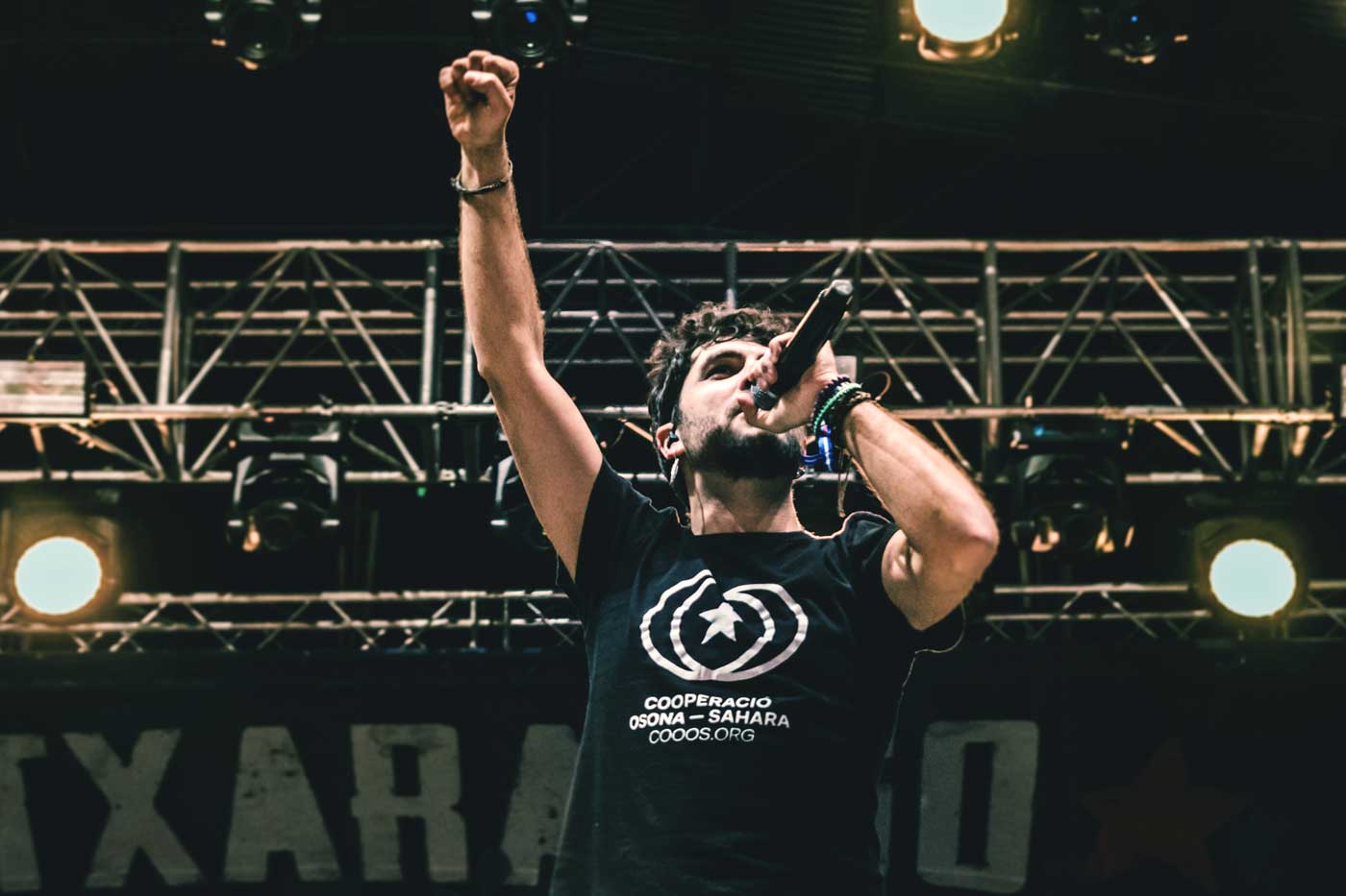 La noche se hacía con uno de los conciertos más esperados del festival entre los jóvenes, Txarango. Los catalanes volvían al escenario Negrita un año más. La anécdota fue que en la pasada edición el concierto de Txarango fue el que más pasado por agua estuvo, y justo después de recordar esa noche y compararla con la buena velada de este año empezaron a caer las primeras gotas. Pero para nada nos preocupamos. Alguer y compañía, unidos con su público, dejaron el listón más que alto repasando “El cor de la terra” (17) y sus temas más queridos de “Som riu” (14) i “Benvinguts al llarg viatge” (12). Hubo hasta tiempo para leer una carta cuyo remitente era Jordi Cuixart desde Soto del Real.
