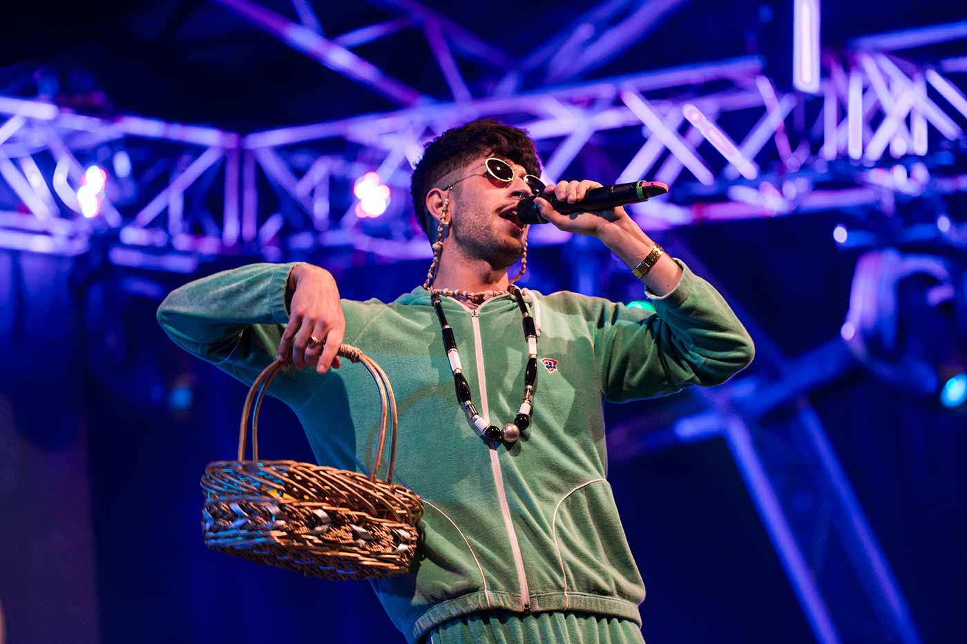 Tras ella llegó el autentico reclamo del día, el malabarista de las palabras Bejo, acompañado de su fiel Dj Pimp. Afirmó que nunca había actuado ante tanta gente, pero lo hizo con la misma naturalidad y desenfado que siempre. Jugaba en casa y se explayó repartiendo lo mismo caramelos que napolitanas. Empezaron con un flow más suave, pero a mitad de actuación y tras una demostración de la habilidad de Pimp a los platos, ya habían revolucionado a todos con temas como "El tupperware"," Una papa pal kilo" o "Hasta abajo", que fueron coreadas a viva voz. Uno de los triunfadores del festival.