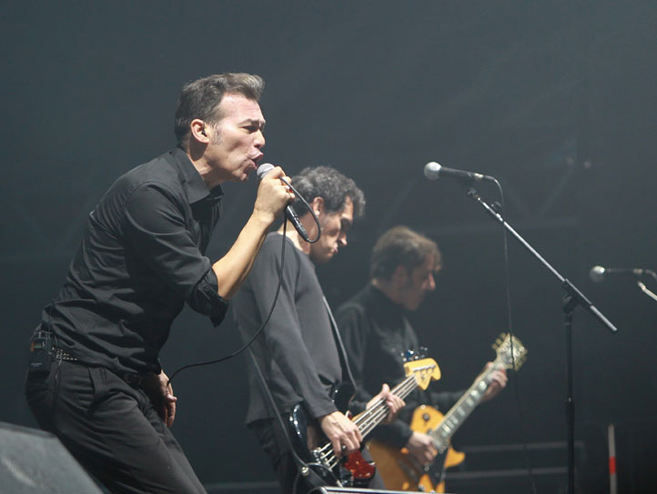 Y al margen de gustos y estilos, otras dos bandas ofrecieron sendos conciertos explosivos que recordaron a lo que se pudo ver un año antes a cargo de Mónica Naranjo. Nos referimos sobre todo al metal melódico de los holandeses Within Temptation, que presentaron en Logroño su sexto álbum de estudio -“Hydra” (BMG, 14)- en una actuación implacable, marcada por el contraste de la brutalidad de las guitarras y la lírica de la vocalista Sharon den Adel, y por las proyecciones audiovisuales en el escenario. Y otro concierto memorable fue el que ofreció John Newman, estandarte del pop más comercial, que finalizó el directo con su gran hit “Love Me Again”, pero se mostró comprometido como pocos por divertir al público. El británico lo dio absolutamente todo sobre las tablas. Cantó, bailó, saltó, sudó… Y la parroquia se entregó. Tanto, que al terminar se vivó la desbandada de la mitad del aforo, que se perdieron así el evento que más interés mediático había despertado en esta edición: el regreso a los escenarios de la banda granadina 091 (en la foto inferior) dentro de una gira durante 2016 llamada “Maniobra de resurrección” Este grupo, fundamental en la escena rock de los años 80 y 90, y disuelta en 1996, se había convertido durante su ausencia en un grupo de culto tentado muchas veces para regresar. Se había generado muchísima expectación en las jornadas previas a su vuelta en Logroño. Tanta, que entre el público eran mayoría los foráneos, llegados desde lugares como Canarias o la Granda natal de la banda. Bajo un enorme luminoso con las tres cifras de su nombre, los hermanos Lapido y compañía ofrecieron una sesión muy seria de rock n’ roll de la vieja escuela interpretando temas de todos sus discos: “Palo Cortao”, “Debajo de las piedras”, “Tormentas imaginarias”, “El lado oscuro de las cosas”… Los Cero recordaron que el suyo es un repertorio generoso en himnos.