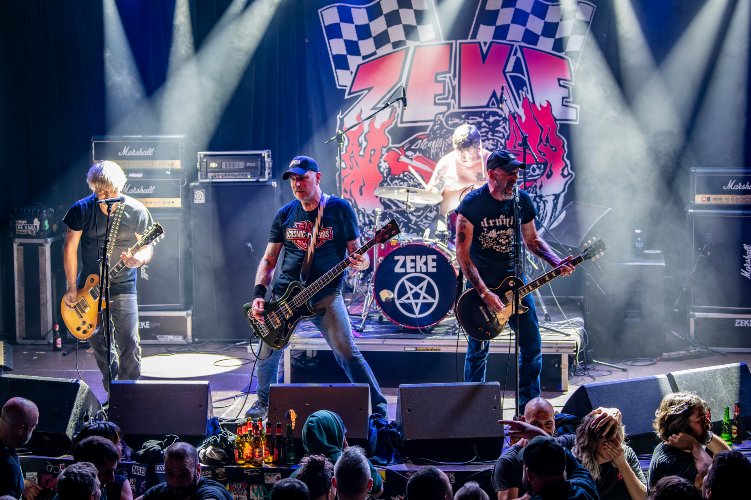 El grupo de punk n roll y hardcore desgranó su catálogo de, sobre todo temáticas automovilísticas y sexuales, y soltó varias canciones de uno de los álbumes favoritos de los fans, el “Kicked in the Teeth” de 1998, como “God of GSXR”, “Twisted” —que podíamos decir que es su “balada” al bajar considerablemente las pulsaciones por minuto y que tanto coro propició— o la versión de “Shout it Out Loud” de Kiss que ya es un clásico en su acelerada versión. Sonó varias veces el clásico propio de su álbum de debut “302 Cubic Inch V-8 Powered Blues” sin llegar a finalizarlo, y metiendo otras canciones en medio —como la suprema y siempre pertinente “I Don’t Give a Fuck”— para culminar finalmente con esa parte final bluesera a la que esperábamos ansiosos. Otro de esos ineludibles temas para ir finalizando, el “Zeke You” que, entre otras cosas bautiza su página web, y que tiene el honor de ser su canción más larga (unos tres minutos), además de un himno como pocos. Después, la veloz y a la yugular “Lawson”, y hasta la próxima. No hicieron bis, lo que extrañó, y a algunos mosqueó, pero siendo honestos … es que ya habían cumplido de sobra con su cometido.