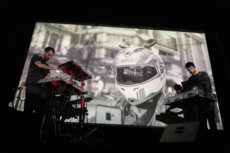 En esas dos facetas se mueve actualmente Jon, la electrónica y las bandas sonoras. De hecho "Martian Civilization" (Original Motion Picture Soundrack), que presentó como última oportunidad, este jueves noche en Bilborock y dentro del Festival Zinebi, viene a ser una especie de ensoñación electrónica retrofuturista sobre una película por hacer. A falta de la misma, en el directo se acompaña de los visuales que proyecta frente a él su hermano Mikel Aguirrezabalaga, material audiovisual porpio mezclado con metraje producido por Rafa Zubiria y Asier Bueno, imágenes a veces abstractas o en negativo y otras mucho más cotidianas, que van de unos pies caminando por la arena de una playa a relieves crespusculares, reflejos acuáticos, descomposiciones de luz, barriadas grises, rascacielos nocturnos, rostros y figuras humanas, plantas, bosques y por supuesto paisajes desérticos del planeta rojo, porque estamos ante una especie de distopía futurista en Marte.