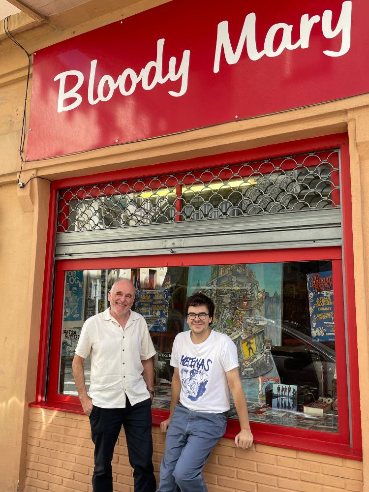 La tienda de discos de Irún fue iniciativa de Juancar García, conocido como no podía ser de otra manera como Juancar “Bloody Mary”, y su compañera Idoia Rodríguez. Después amplió perspectivas como promotora de conciertos, y ahí están entre otras, las diecisiete ejemplares ediciones del Andoaingo Rock Jaialdia para certificarlo. O este próximo e ilusionante Bolo-Bolo Weekend para los días 3 y 4 de octubre en Intxaurrondo como colofón de aniversario y con doce emergentes bandas cercanas. Mientras Juancar, que ya no cumple los 60, sigue al pie del cañón, es su hijo Marcos García quien ha tomado el testigo, sobre todo en la parte de la promotora, a la vez que trabaja para el Zinemaldia donostiarra. Cinco años más joven que la tienda, también se suma a su aita para resolver nuestras dudas en torno al siempre complicado asunto de despachar vinilos y cds detrás de un mostrador en medio de crisis generales y particulares de un sector muchas veces olvidado.