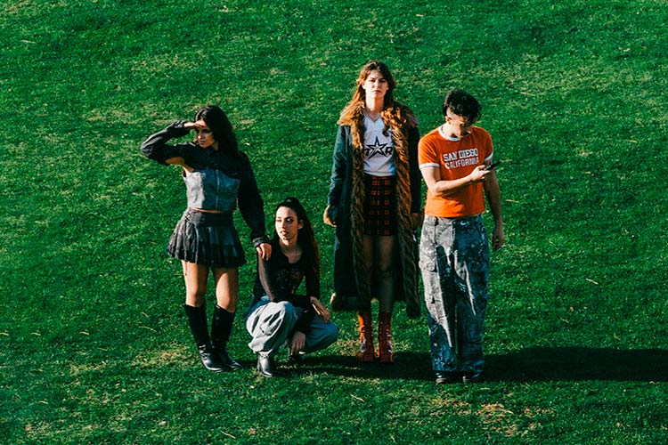 El hilo conductor del disco es el de un programa imaginario de radio La Manga, en el que suenan los éxitos de Jordana B, incluso hay un anuncio a modo de interludio. No es la primera vez que se hace un disco basado en una emisora (ahí está The Weeknd hace unos años con “Dawn FM”), pero Jordana B. no se han inspirado en eso. Lo que caracteriza su caso son las cuñas habladas de María. “Queríamos mantener esa esencia y el primer tema que grabamos con algo así fue ‘Mar Menor’. Llegó un momento en el que quisimos darle un sentido. Para mí el nexo era que el disco debía acabar con ese tema. Al acabar con esa cuña, teníamos que introducir el álbum como un programa de radio. Como las canciones son tan únicas, es como un programa de radio”, apunta Marta (bajista del grupo). “Teníamos las canciones perfectas para crear un hilo conductor teatralizado. Queríamos que ‘Holter’ fuera la canción que abriera el disco. Lo hace de una manera muy musical. Luego teníamos ‘Gente corriente’, en la que se incluyen las partes habladas y mola porque nunca se pierde la conexion con esa persona que está locutando”, añade María.
