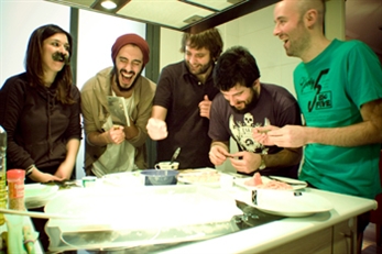 “Nos juntamos en 2005, y lo que nos movió a hacer el grupo es que todos los de aquella época veníamos de tocar punk rock y nos habíamos cansado de ello, y queríamos hacer algo diferente, que fuera más ambiental en parte”, comenta el quinteto madrileño con pasado hardcore en Nacen de Las Cenizas y presente paralelo en los “zapatilleros” Trono de Sangre, así como colaboraciones con Toundra, Remate y Tenple. “Al principio hacíamos algo más pop, digamos que instrumental y vocal al cincuenta por ciento, pero el cantante se fue. Posteriormente probamos con algún cantante externo al grupo, no encajó y decidimos obviar tener letras y voces porque no nos parece una premisa fundamental para hacer música”. El rock instrumental con marcado carácter progresivo y con ambientación cinematográfica enmarca las coordenadas en que se mueve “Te dije que algún día nos reiríamos de esto”, un disco en el que su parto tuvo mucho de montaña rusa. “En agosto de 2009 nos tiramos diez días en Pamplona con Brian Hunt, juntos treinta y ocho horas al día, compartiendo todo, compitiendo en el Mario Kart con cuatro consolas en red. Tuvimos muchos contratiempos, quemamos una fuente de alimentación del ordenador, tuvimos que cambiar in extremis válvulas de un cabezal…”. La forja de una canción de treinta y ocho minutos dividida en cuatro partes recuerda a lo que gestaron los neo-crust gallegos Ictus en su álbum “Imperivm”, que solo constaba de un solo tema de cuarenta minutos ¿Es acaso un disco conceptual con un mensaje de fondo? “Pues sí. Digamos que la pieza era un reto. Para algunos era un reto que llevaba arrastrando desde hace tiempo. Para otros era simplemente el poder hacer algo que presentar en directo sin necesidad de cortes, después de haberse rehecho el grupo… Y sí, es todo una pieza, pero que tiene sus partes diferenciadas, puesto que lo compusimos por fases, en cuatro. El concepto en general era superación, cumplir una meta, superar una situación límite, a lo bestia, y que la pieza reflejase esa transformación, el crecimiento, el disfrute, la satisfacción, la celebración que así refleja todo esto”.