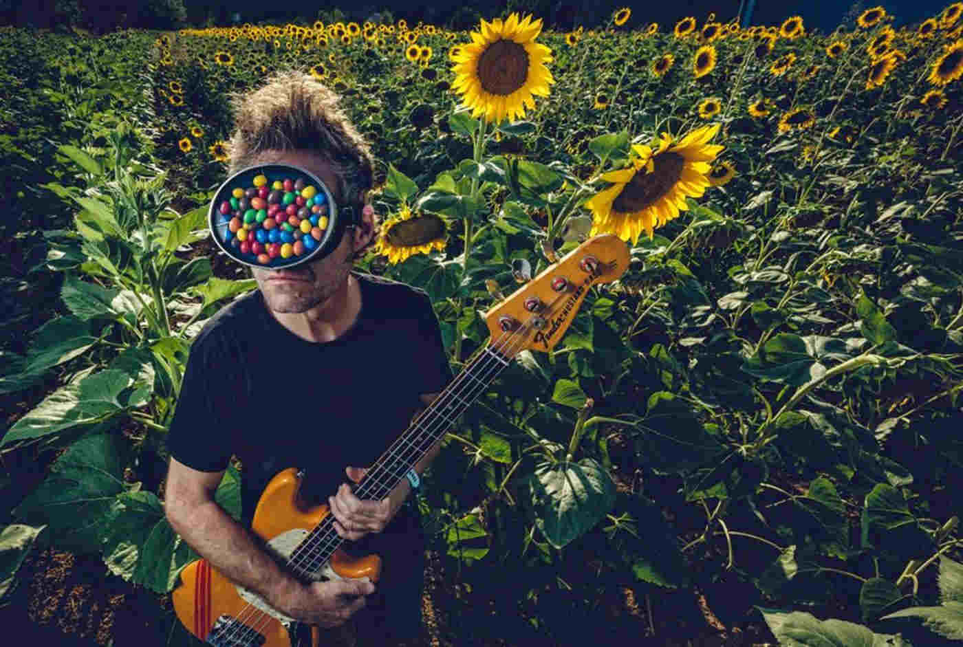 Al tema de la portada le di muchísimas vueltas. Lo mismo que al nombre del proyecto, que viene de una coña que tenía con mis amigos. Siempre les decía: -el día que cumpla 50 años, quiero que me llaméis don Santiago y me tratéis de usted-. Y la portada, en un principio, iba a ser la molécula del Alprazolam. Hice unas cuantas pruebas de diseño y quedaba muy chulo. También tenía la idea de la foto de un niño perseguido por un cabezudo. Lo probé y, durante unos días, fue la idea definitiva. Pero una noche tuve un sueño en el que llevaba unas gafas de bucear llenas de algo que no me dejaba ver. Pero, a cambio, era capaz de percibirlo todo de forma nítida sin el sentido de la vista. En esa época tuve sueños extrañísimos. Se lo conté a Jorge Miret, un fotógrafo de mi pueblo que es un artista y que la cabeza tampoco le va muy bien (risas). Nos fuimos a un campo de girasoles que hay en Calatayud y me hizo una sesión de fotos impresionante. Cuando me enseñó los resultados, tuve claro que tenía la portada. Luego, Sergio Pérez, un ‘logroñita’ que también nos diseña los discos a Los Gandules, se encargó de hacer la carpeta. Y estoy muy satisfecho con el resultado. Me encanta.