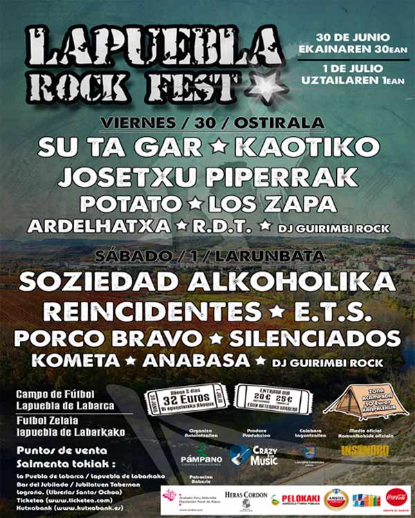 Soziedad Alkoholika, Su Ta Gar y Reincidentes en Lapuebla Rock Fest