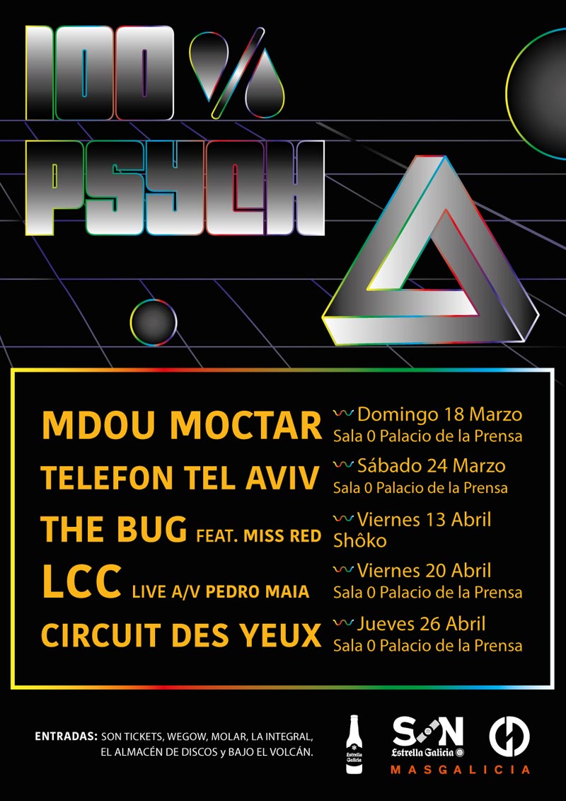 El ciclo nació en 2016 con la intención de cubrir diferentes formas artísticas y musicales que pudieran ubicarse dentro de la psicodelia, entendida esta en el sentido más amplio. Así, este año presenta un cartel sin fisuras en el que es difícil hablar de nombres superiores e inferiores. Sí que si quisiéramos destacar algo, probablemente Telefon Tel Aviv y la unión de The Bug con Miss Red sean dos acontecimientos muy esperados en la capital.