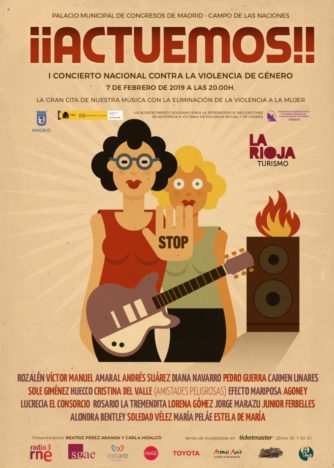 La iniciativa apoyada por el Ministerio de Igualdad, Radio3, SGAE y diversas empresas y asociaciones reunirá el 7 de febrero a más de a 20 artistas en un concierto de unas dos horas y media de duración para dejar claro que la música está contra la violencia de género. Esta mañana tenía lugar la rueda de prensa del evento en la que el director artístico de la gala, Ignacio Faulín, comentaba que se ha querido reunir artistas de diferentes género y edades. En ella también estaban Victor Manuel y Cristina del Valle como representantes de los artistas que actuarán esa noche mostrándose ambos activos en esta lucha. Como también ha sido el caso de Carla Hidalgo, quien será la encargada de presentar el evento.