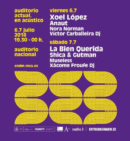 El Centro Nacional de Difusión Músical (CNDM) es el encargado de este nuevo proyecto llamado Auditorio Actual. En acústico donde durante dos días numerosos artistas como Anaut, Shica & Gutman o Musless ademas de los DJ's Victor Caballeira y Xácome Froupe cambiarán la música clásica por ritmos más indie y electrónicos en un ambiente intimo donde la acústica jugará un papel importante.