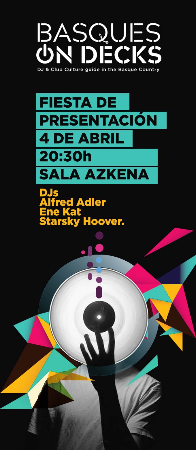 Basques On Decks ve la luz esta semana con el objetivo de dar cobertura a la escena DJ de Euskadi, Navarra y alrededores. Este nuevo medio musical digital se presenta el jueves 4 de abril en la sala Azkena. A las 20:30 horas presentarán a los asistentes la web y, diez minutos después, sonarán los vinilos de los DJs invitados Alfred Adler, Ene Kat y Starsky Hoover.