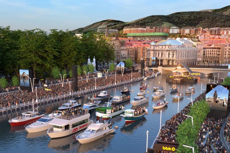 BBK Ría se ubicará en un espectacular escenario flotante en plataformas de grandes dimensiones entre los puentes del Arenal y del Ayuntamiento. El público podrá disfrutar de la música en directo en una experiencia irrepetible: a ambas orillas de la ría, y en agua, a bordo de embarcaciones autorizadas para ello. Con el fin de garantizar la seguridad de todas las personas participantes, el evento tendrá un acceso controlado y un número limitado de embarcaciones y artefactos flotantes. Estas embarcaciones estarán gestionadas por BBK siguiendo todas las medidas de seguridad establecidas por las autoridades competentes, quienes también regularán el uso de la lámina de agua. Las plazas disponibles para el público en las embarcaciones organizadas por BBK se asignarán mediante sorteo entre distintas asociaciones del tercer sector y personas con las que la entidad colabora habitualmente.