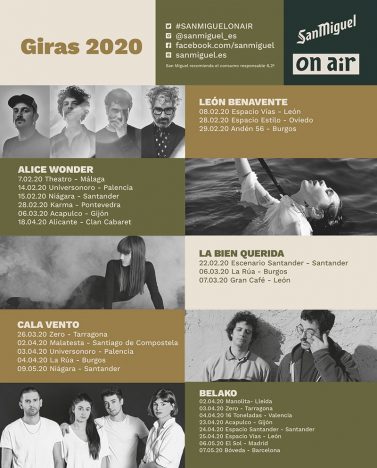 Las Giras San Miguel On Air vienen apostando por la música menos habitual, pero sí accesible y hecha para todos. Se trata de llevar la mejor música a las principales ciudades de España. En esta ocasión, Cervezas San Miguel ha decidido apoyar las propuestas musicales de Belako y Cala Vento.