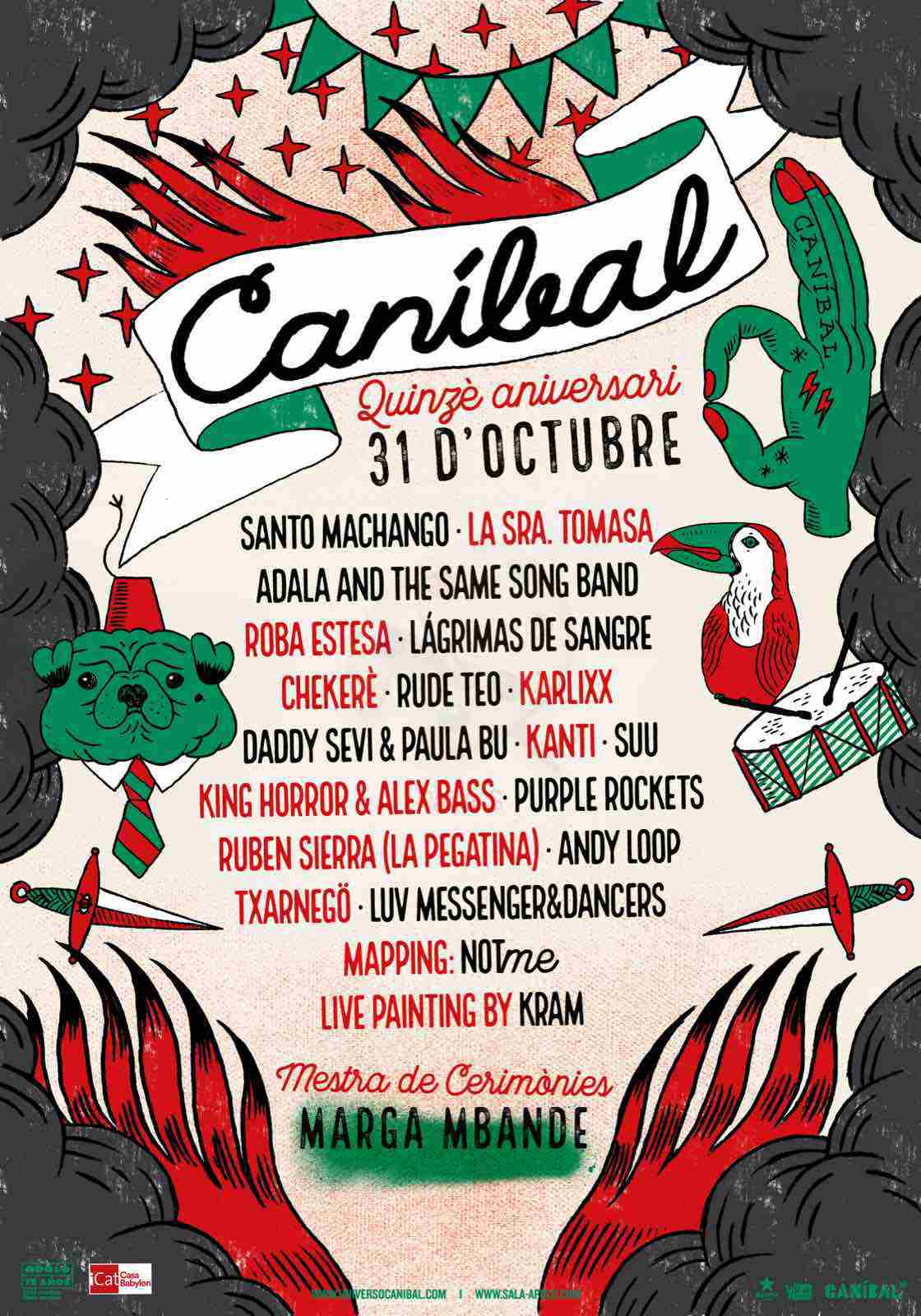 En el concierto colectivo final volverán muchas de las bandas que ya han pasado por el club y de las más representativas del panorama catalán. Caníbal no ha dejado de ser un reflejo de la música festiva del país desde el 2003 y nunca ha perdido su esencia a pesar de los cambios, siendo el traslado a la mítica Sala Apolo (que también está de aniversario) hace cuatro años el más importante.