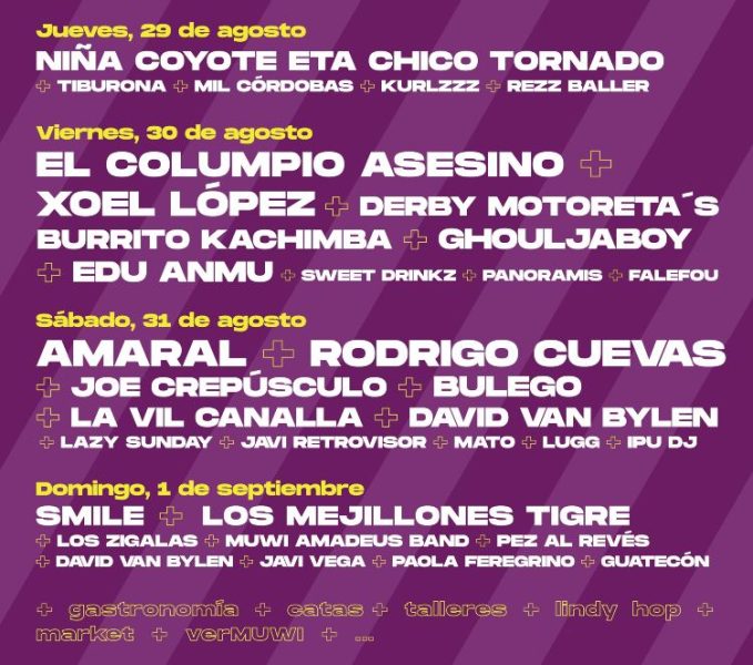 Los cuatro días llenos de música arrancarán el jueves 29 de agosto con el “killer duo” Niña Coyote eta Chico Tornado, la banda madrileña Tiburona, los alfareños Mil Córdobas, y como cierre, las djs Kurluzzz y Rezz Baller.