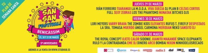 El Sansan Festival, que se celebra en Benicassim los días 29,30 y 31 de marzo celebra su quinto aniversario con un cartel repleto de artistas muy importantes en el panorama nacional. 3 días de conciertos en directo en plena costa mediterránea que dan comienzo a la temporada festivalera.