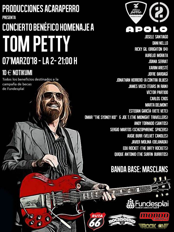 Falleció hace tan solo unos meses de manera repentina a causa de un paro cardíaco, un martes 2 de octubre que pasará a la historia negra de la música rock como “el día en que murió Tom Petty”. Parte de la escena barcelonesa estará el miércoles 7 de marzo en La [2] de Apolo para rendirle un emocionante homenaje, interpretando una selección de su discografía de manera totalmente desinteresada.