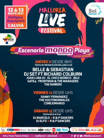El Mallorca Live Festival está cerca de celebrar su segunda edición los días 12 y 13 de mayo en el Antiguo Aquapark de Calvià (Mallorca). El miércoles 10 de mayo a partir de las 19:30h tendrá lugar en el Patio de La Misericordia de Palma la presentación del festival, con las actuaciones en directo de Anni B Sweet y los mallorquines Lava Fizz, además de las sesiones de Djs de Notodoesindie y Enric Ricone. El evento es gratuito mediante invitación y se pueden recoger a partir del lunes 8 de mayo en Pasatiempos (Pas d'en Quint 3, 07001 Palma) hasta un cupo de 300 invitaciones.