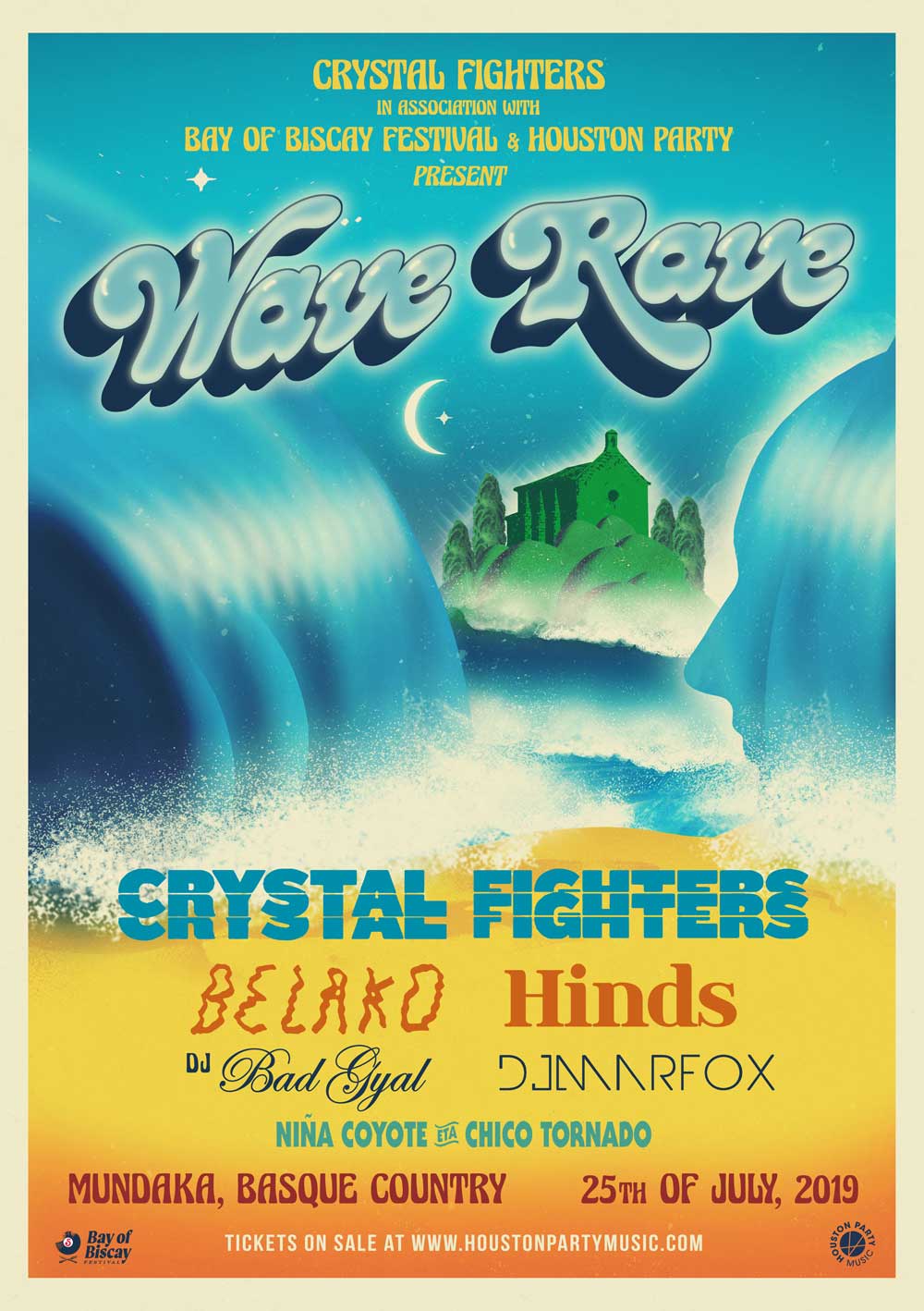 Como ya hicieran en agosto de 2013 con la presentación de "Cave Rave" (Zirkulo Pias/Atlantic Records, 2013) en las cuevas de Zugarramurdi en Navarra (crónica aquí), Crystal Fighters llevarán su festival Wave Rave a la localidad vizcaína de Mundaka, donde protagonizarán el concierto central del evento. El festival estará organizado por el propio grupo en colaboración con Houston Party Music y el Bay of Biscay Festival -se celebrará, de hecho, en la jornada previa a este- y contará también con las actuaciones de Hinds, Belako, Niña Coyote eta Chico Tornado, DJ Marfox y Bad Gyal DJ Set.