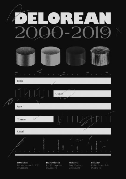 Cuatro y ninguna más son las oportunidades que quedan para ver a Delorean antes de que empiecen un parón indefinido. Los vascos anunciaron su retirada el pasado mes de octubre y desde entonces todo lo que han recibido han sido muestras de cariño y palabras bonitas. Tanto los fans como la banda deseaban despedirse, así que han programado cuatro conciertos bajo el título "Delorean: 2000-2019". ESTUDIOPRIMO les ha diseñado el cartel, que puedes ver a continuación. Ej Marais será el encargado de abrir todas las actuaciones.