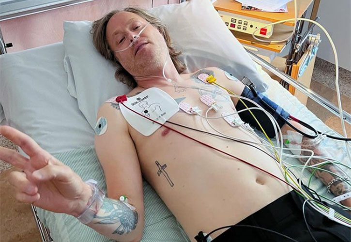 En su mensaje en redes sociales, el músico sueco informa de que sufrió ese ataque al corazón mientras descansaba en su habitación de hotel en Uppsala. "Fue muy doloroso y sentí mucho miedo. Pero quiero dar las gracias a los maravillosos médicos y enfermeras que me atendieron en el hospital de Uppsala. Todavía estoy aquí para seguir luchando un día más. Teniendo en cuenta lo ocurrido, me siento bien. Dolorido, cansado y conmocionado".