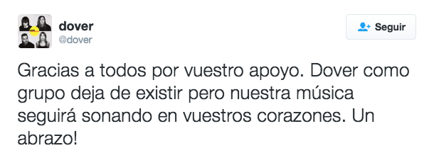 Las hermanas Amparo y Cristina Llanos crearon Dover allá por 1992, influenciadas por grupos como Nirvana, R.E.M y otros tantos que tenían sus raíces en el rock indendpiente estadounidense de los 80. Su primer álbum "Sister" (Everlasting/Caroline, 95) pasó inadvertido, pero su segundo trabajo "Devil Came To Me"(Subterfuge, 97) llegó a ser cuatro veces platino, las catapultó a la fama y llevó hits como "Devil Came To Me" o "Serenade" fuera de nuestras fronteras. Un fenómeno inédito en tiempos en los que estar en una discográfica independiente iba irremediablemente asociado a ser un artista pequeño.