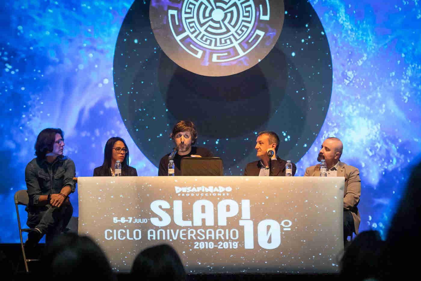 Víctor Domínguez, director del Slap; Fernando Rivarés, concejal de Economía, Hacienda y Cultura del Ayuntamiento de Zaragoza; Anabel Gutiérrez, jefa de servicio de Cultura del Gobierno de Aragón; Javier Pomar, responsable de Marca de Cervezas Ambar; y Unai Mensuro, director Marketing del Camping Ciudad de Zaragoza, han participado en esta presentación del ciclo.