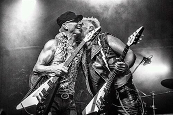 Una cita en la que se ponía fin a seis meses de exposiciones y actividades sobre Scorpions. Stingers actuaban junto a una serie de bandas alemanas, eso dice mucho del reconocimiento que tienen. Pero el momento más importante llegaba cuando a mitad de la actuación, el presentador anunciaba la subida al escenario del mismísimo Rudolf Schenker, guitarrista, compositor y miembro fundador de Scorpions. Armado con su Flyin V se unió a Javi, su clon sevillano que junto al resto de la banda no salían de su asombro. "Big City Night" y "Rock You Like A Hurricane" fueron los temas que compartieron juntos.