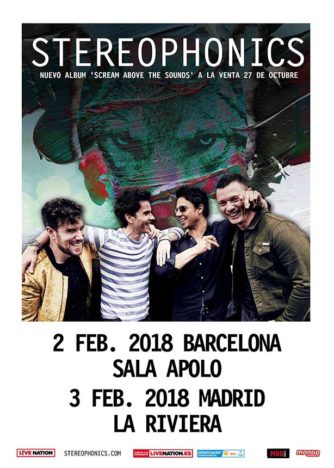 Veinte años después de su álbum de debut "Word Get Around", Stereophonics vuelven a los escenarios para presentar su nuevo disco "Scream Above The Sounds", que saldrá a la venta el 27 de octubre. La banda ha confirmado dos fechas en nuestro país: el 2 de febrero en la sala Apolo de Barcelona y el 3 de febrero en La Riviera de Madrid.