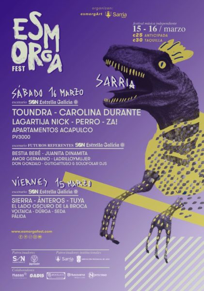 Esmorga Fest, uno de los primeros festivales de la temporada 2019, celebrará su 5º aniversario el fin de semana del 15 y 16 de marzo en Sarria, Lugo. En las últimas semanas ya habíamos conocido la presencia en el festival gallego de Lagartija Nick, Toundra, Tuya, Carolina Durante, Sierra, Bestia Bebe, Za!, Apartamentos Acapulco, Ànteros y Perro. Hoy el festival, que incorpora el sello SON Estrella Galicia (que a su vez celebra su 10.º aniversario), ha anunciado también que forman parte del cartel Voltaica, El Lado Oscuro de la Broca, Amor Germanio, Ladrillo y Mujer, Seda, Dûrga, Pálida, PV3000 y Don Gonzalo.