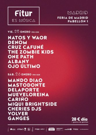 Fitur es Música es la primera producción musical propia de la mano de IFEMA-Fitur. Tiene cuatro organizadores: Ifema, Fitur, Planet Events y Disorder. Además cuenta con el apoyo en medios de Radio 3 y Mondo Sonoro. Se trata de un festival centrado en música urbana y alternativa siendo también paritario ya que existe un equilibrio artístico entre bandas lideradas por hombres y por mujeres. El cartel del primer día destacará por tendencias rap y trap teniendo como cabezas de cartel a Natos y Waor. Este primer día tendrá música de 19 a 3 y también estarán Denom, Cruz Cafuné, The Zombie Kids, One Path, Albany y Ojo Último. El segundo día tiene una programación indie y electrónica la música sonará de 19 a 6. Los artistas presentes serán Mando Diao, Mastodonte, Delaporte, Mueveloreina, Cariño, Miqui Brightside, Cheries DJs, Volver y Ganges. Los cabezas de cartel de ambos días, Natos y Waor y Mando Diao, realizarán conciertos completos. El festival indoor contará con un único escenario por lo que no te perderás ningún concierto ya que no se solaparán. El despliegue técnico con el que cuenta Fitur es Música es digno de festivales ya consagrados.