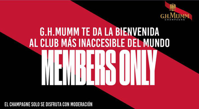 Aunque la entrada es libre y todo el mundo pueda disfrutar de estos eventos, G.H.Mumm te invita a vivir esta experiencia como un auténtico VIP. La marca de champagne estará lanzando concursos en redes sociales hasta el viernes 26 de octubre para poder hacerte con una de as 12 experiencias VIP dobles. Este premio VIP incluye un tour por el backstage, acceso a zona VIP y degustación de un par de copas de esta marca de champagne. Para ganarlas simplemente tienes que hacer una captura de pantalla al Instagram stories de G.H.Mumm cuando salga un ticket de "Members only" y subirlo a tus stories con el hashtag #MembersOnly y mecionando a @ghmumm_es.