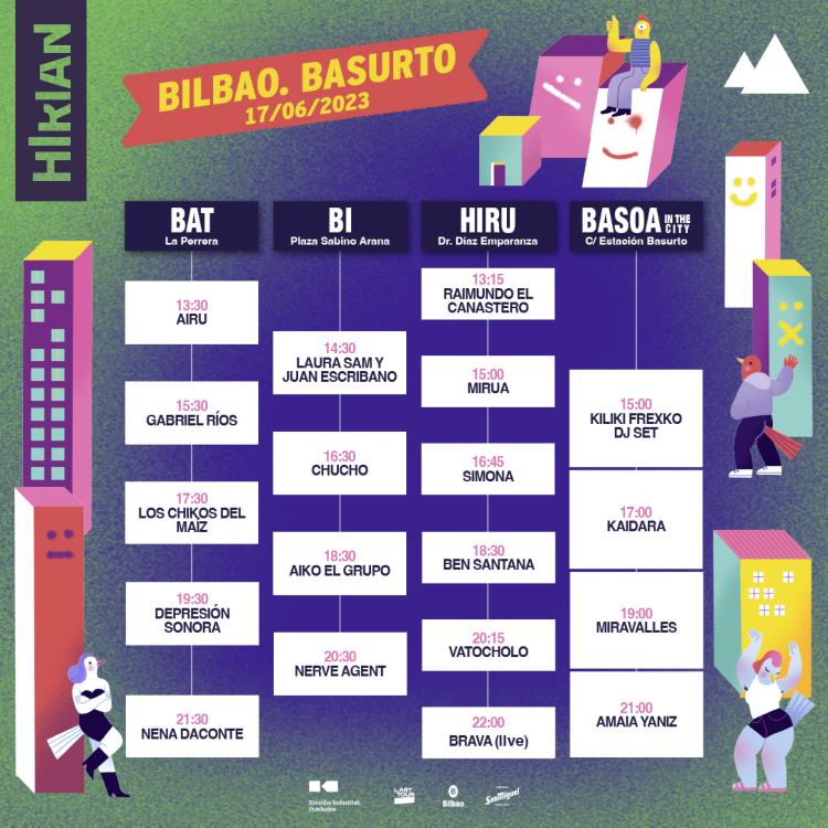 Tras el debut de Herrian, con dos jornadas de actuaciones en Lekeitio y Mungia, el sábado se celebra la tercera entrega de las actividades paralelas del Bilbao BBK Live 2023, que volverá a llenar de música Kobetamendi a principios de julio. Será la quinta edición de Hirian con 10 horas de música desde las 13h hasta 23h, con más de 20 artistas que convertirán por un día las calles y plazas del barrio de la capital vizcaína en una auténtica fiesta diurna con una programación musical de vanguardia, ecléctica y abierta a todos los gustos.