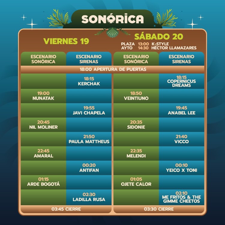 Este fin de semana Castro-Urdiales se vuelve a revolucionar con el Festival Sonórica, uno de los eventos de música en directo más grandes de Cantabria. El Estadio Riomar volverá a ser el lugar en el que se reunirán miles de personas para disfrutar de las 18 actuaciones que componen el cartel. Entre sus grandes nombres encontramos a Amaral, el dúo zaragozano que lleva desde 1998 activo dándonos hits y clásicos del pop rock como "Sin ti no soy nada", "Marta, Sebas, Guille y los demás" o "Días de verano"; Arde Bogotá, quienes han tenido un éxito inaudito con su último álbum "Cowboys de la A3", el astuariano Melendi; o el trío catalán Sidonie, que se encuentra presentando su décimo álbum de estudio "Marc, Axel y Jes".