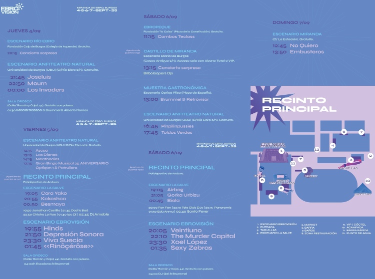 Pero Ebrovisión va más allá de la música. En esta edición de bodas de plata se refuerza la apuesta gastronómica con menús diseñados por los chefs locales Alejandro Serrano y Alberto Molinero —con Estrella Michelin y Sol Repsol—, que ofrecerán platos inspirados en los artistas participantes. Además, no faltarán propuestas paralelas como exposiciones, mercadillo, zona infantil “Ebropeque” y un sinfín de actividades que convierten al festival en una experiencia global.