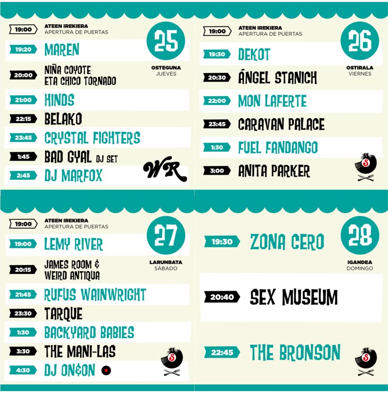 Ya conocemos los horarios de esta gran fiesta que por primera vez va a celebrarse en Bermeo, tras cuatro ediciones en la localidad vecina de Mundaka. Toda la información relativa a entradas, alojamientos, y el resto de actividades (gastronómicas, etc), están disponibles en la web.