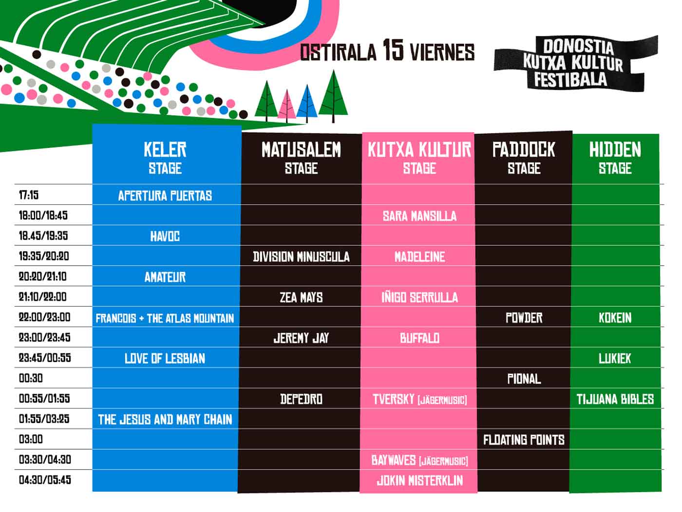 A continuación puedes consultar los horarios de la presente edición del Donostia Kutxa Kultur Festibala:
