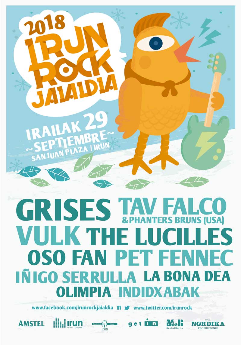 Irun Rock Jaialdia volverá a llenar de música el centro de la localidad fronteriza de Irun el 29 de septiembre con una jornada en la que se subirán a sus dos escenarios un total de 10 bandas. El festival gratuito se dividirá en dos partes; la primera con las actuaciones de los locales Indidxabak y el donostiarra Oso Fan entre las 12 y las 14h, y la segunda con otras ocho actuaciones entre las 17h y 1h de la madrugada. Por la tarde se podrá disfrutar de una buena selección de bandas vascas de diversos estilos: Olimpia, La Bona Dea, Iñigo Serrulla, Pet Fennec, Vulk y Grises. Y desde fuera de las fronteras vascas llegarán las actuaciones de The Lucilles y el gran músico de Memphis Tav Falco junto a sus Phanters Bruns, sin duda uno de los platos fuertes del festival.