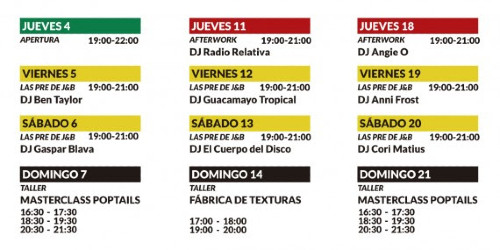 Hay que recordar que todos los domingos será el turno de los talleres. Por ejemplo, este domingo 14 será para el taller de fábrica de texturas. El siguiente y último será para una masterclass de poptails. Todo en conjunto una oferta muy apetecible para amenizar el calor en la capital del país, que no es poca cosa.