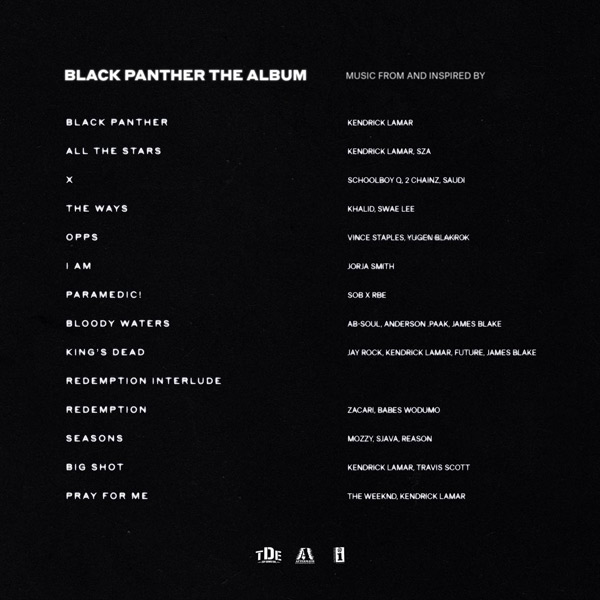 Como cada paso que da Lamar en este mundo, la expectación rodeaba el anuncio de la banda sonora dirigida por el rapero de Compton. Y los créditos anunciados confirman que hay motivos para tener los ojos puestos encima: por ellos desfilan casi todos los miembros del sello y colectivo TDE, como Jay Rock, Ab-Soul, ScHoolboy Q, SZA y el propio Kendrick, que aparece en cinco de los catorce temas del disco, pero también Jorja Smith, James Blake, Vince Staples, Anderson .Paak, Khalid, 2 Chainz, Saudi, Swae Lee, Youn Blackrok, SOB x RBE, Future, Zicari, Babes Wodumo, Sjava, Mozzy, Reason, The Weeknd y Travis Scott. En los tráilers de "Black Panther" habíamos podido escuchar "Panther Like a Panther" de Run The Jewels y "BagBak" de Vince Staples, pero -puede que por no ser temas inéditos o no aparecer en la propia película- no figuran en el tracklist de este disco.