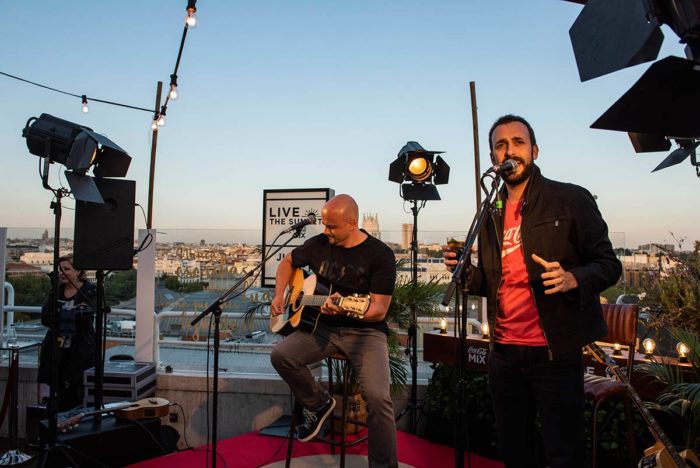 La voz de la experiencia tuvo su hueco bajo el cielo de Madrid, ya cayendo la noche y con las impresionantes vistas de la capital iluminada. Las guitarras de Arco, la andadura en solitario del exvocalista de El Puchero del Hortelano, y Coca-Cola Mix nos llevaron directamente al verano mientras corría el Ron Rouge, el combinado de Coca-Cola Mix que ha acompañado a esta gira por las azoteas. Aires del sur que más tarde soplarían del lejano oeste, aunque las manos que manejaron las cuerdas realmente vienen del norte. Manteniéndose fiel a sus gustos musicales, tal como señaló la maestra de ceremonias, Mikel Erentxun aportó el toque rockabilly y americana al cóctel de artistas.