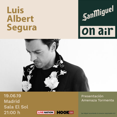 Tras 14 años al frente de L.A., Luis Albert Segura se embarca en su proyecto en solitario. “Amenaza Tormenta” es el primer disco en solitario y en español del artista en el que las canciones cobran una identidad diferentes con letras que surgen de la improvisación de sentimientos. Luis Albert Segura estará presentando este álbum el próximo 19 de junio en la sala El Sol dentro de la programación del ciclo San Miguel On Air.